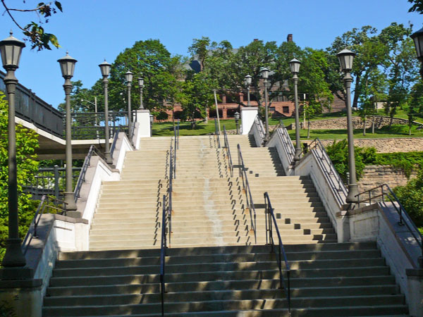 We live on a a river bluff. The only direction I can walk from my home with out walking up or down a river bluff is West. West just isn’t any fun, the dog doesn’t like it either. So I either go down to the River or climb the stairs and walk along Summit avenue. Yesterday I may have over done it a bit and I can feel it in my back and in my legs. I was informed by the 20 something with the fresh mouth that I am not as young as I used to be. Ha!