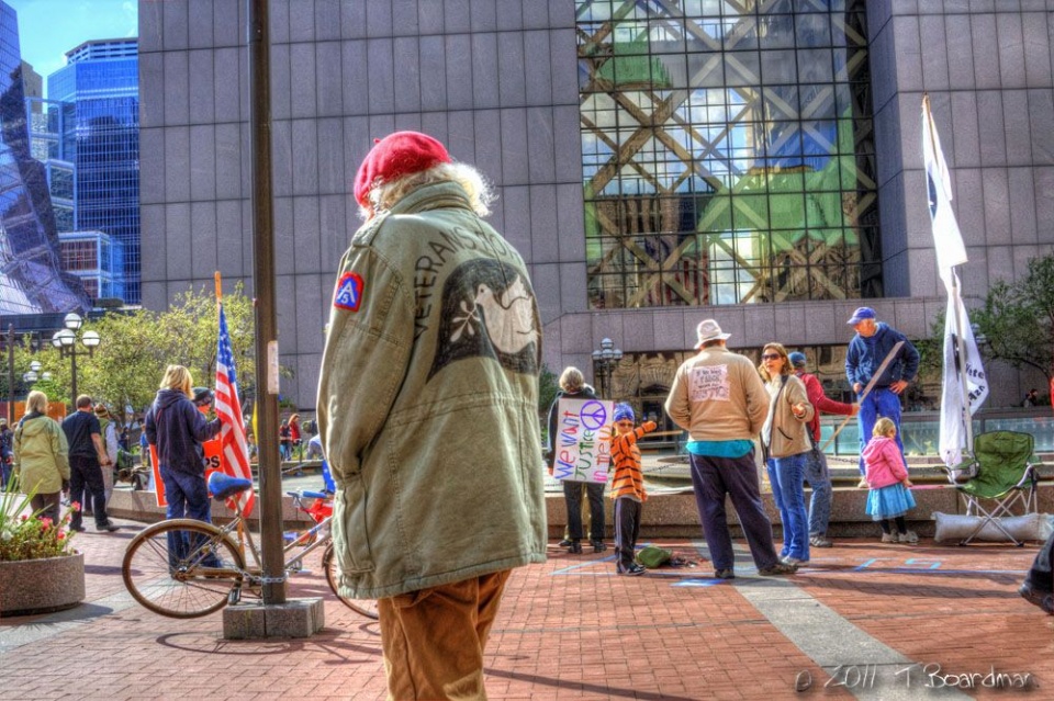The protesters call them selves the 99% and they are protesting the war, poverty, unemployment, national economic policies, corporate greed, the federal reserve system and more. I saw signs that read “People before profits” and “The 99% will not be silenced”