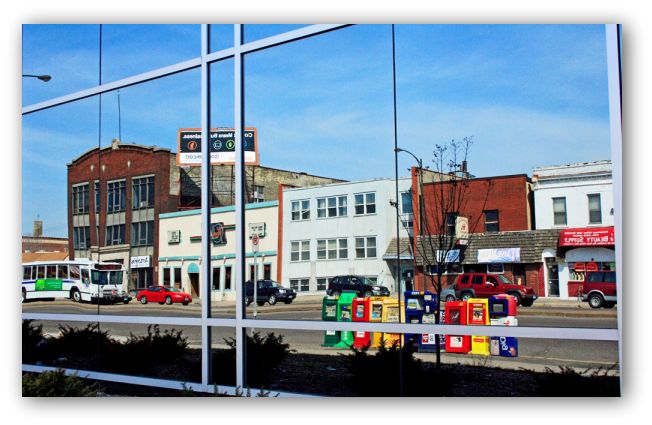 Yesterday I stopped and got out of my car because I thought it would be fun to take a picture in the reflection of the American national bank building on the corner. It was fun, sometimes I just have to stop and smell the carbon monoxide. Even if the air quality is poor the camera still works.
